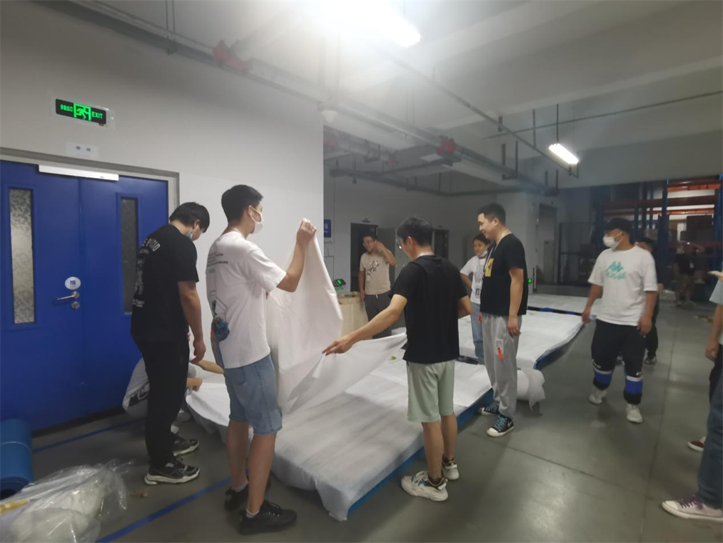 生產(chǎn)就是命令!凍干車(chē)間員工接到上級(jí)指示后,沒(méi)有絲毫猶豫,整理好思緒、安頓好家人,放下?tīng)拷O、背上行囊,立馬奔赴各自的工作崗位,9月1日當(dāng)天下午18:00前已全員就位。廠區(qū)內(nèi)部不具備宿舍條件,大家齊心協(xié)力、自己動(dòng)手,將托盤(pán)拼湊起來(lái),鋪上一層廢紙箱,再裹上一層熱風(fēng)棉,就這樣一張張簡(jiǎn)易床和臨時(shí)宿舍便搭建起來(lái)了。各部門(mén)同事也積極贊助家里的棉絮、氣墊床等物資,提供力所能及的幫助。